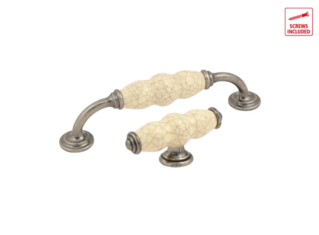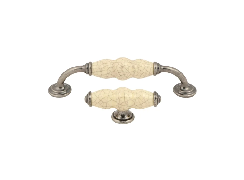 • Kitchen handles with pewter ends and cream ceramic insert