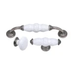 • Kitchen handles with pewter ends and white ceramic insert