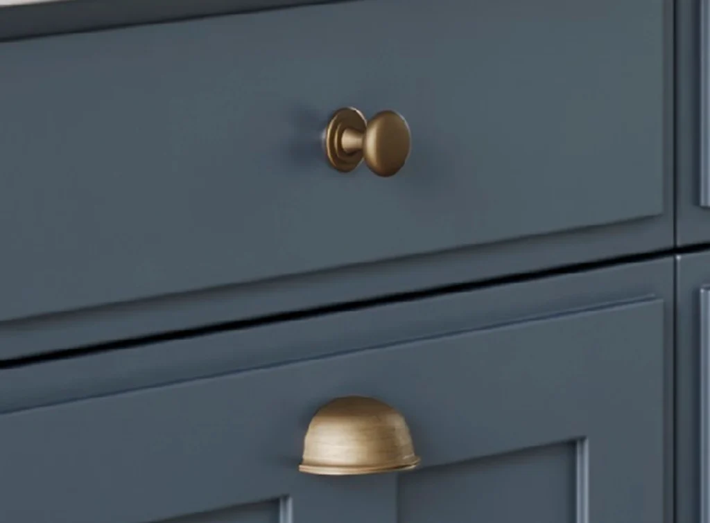 • Collection of beautiful light bronze cup handles with matching knobs