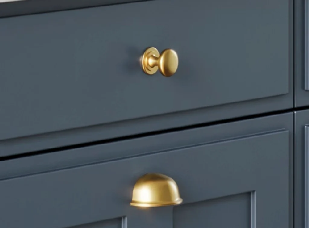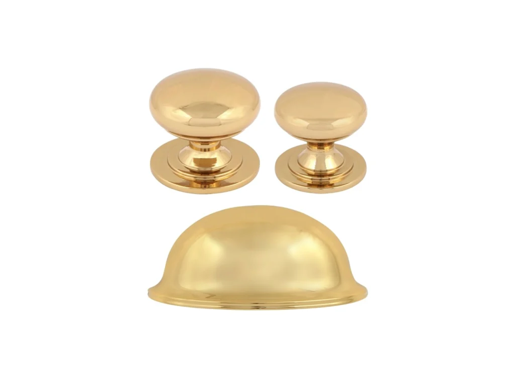 • Collection of beautiful polished brass cup handles with matching knobs
