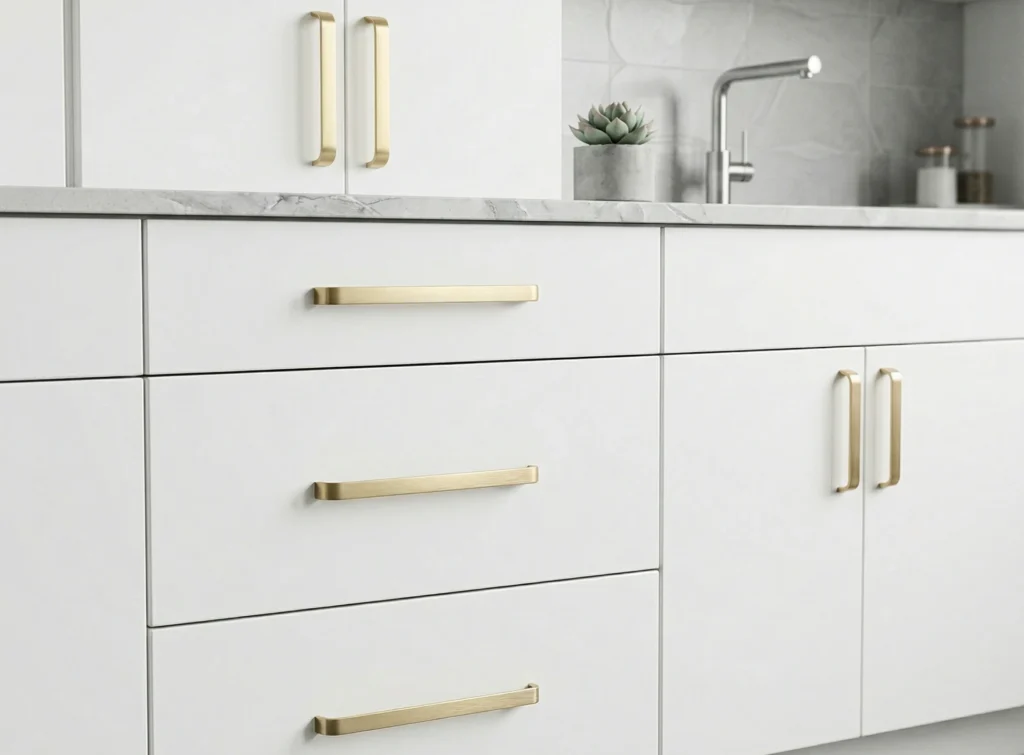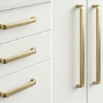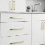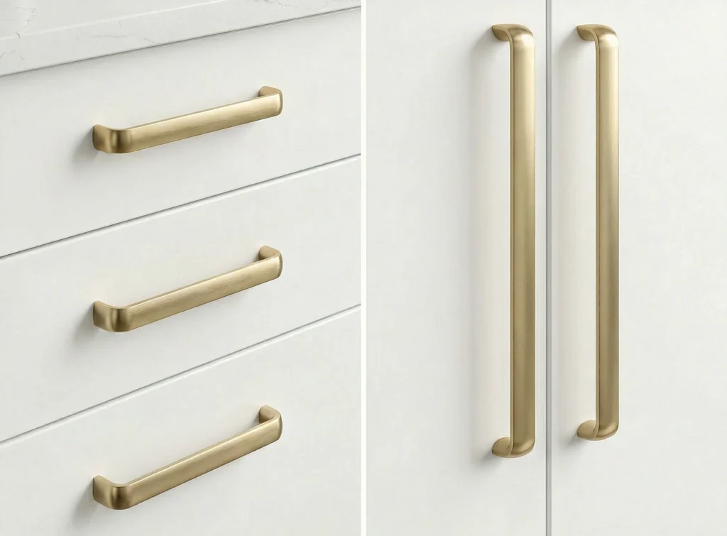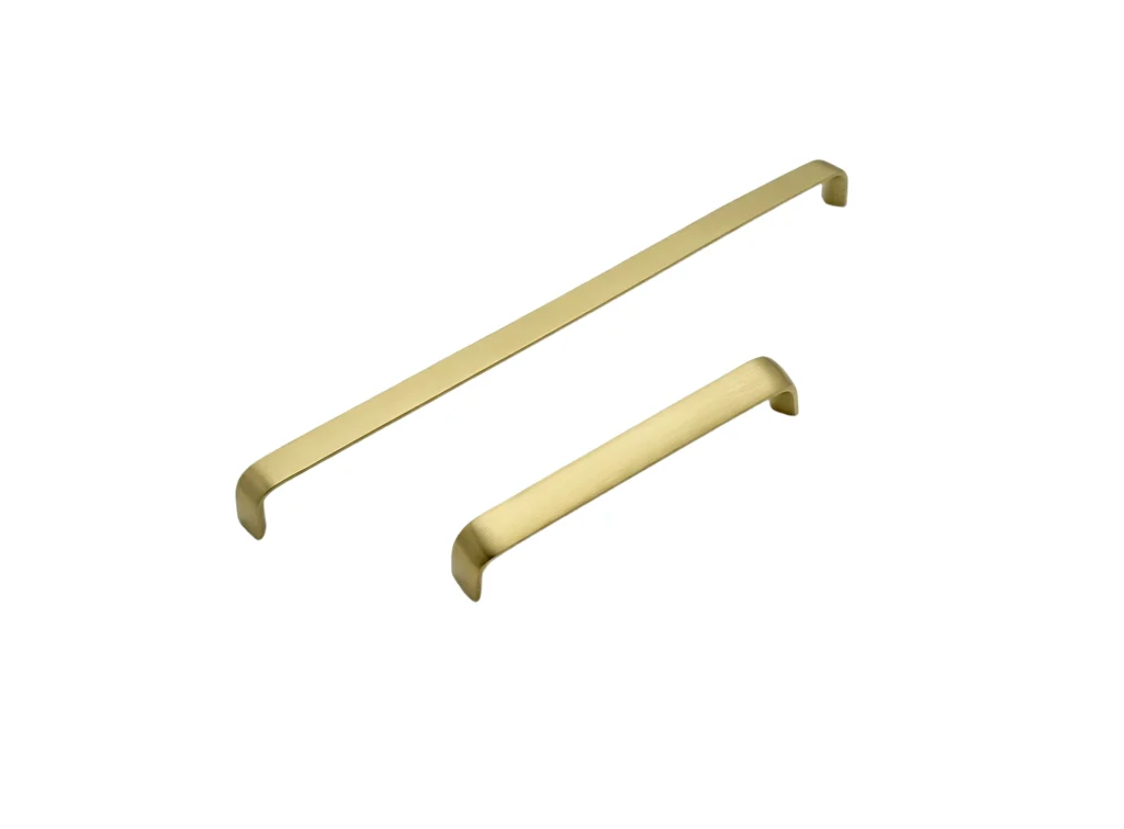• Satin Brass D cabinet handles